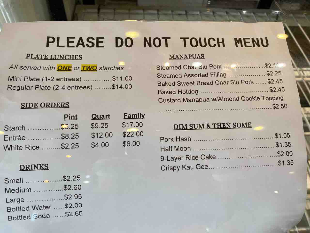 醤油チキン、ラプチョン(lup cheong)、マナプアは2.25ドル。