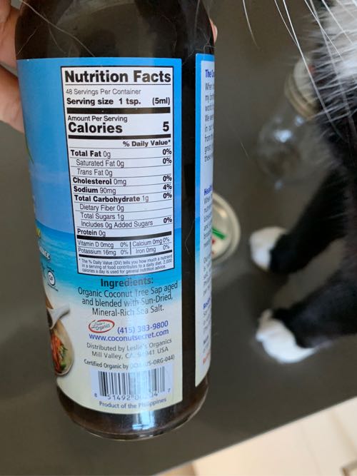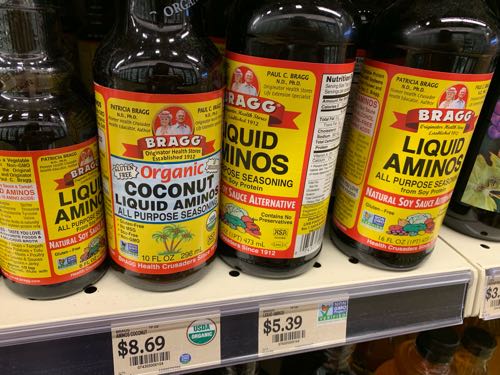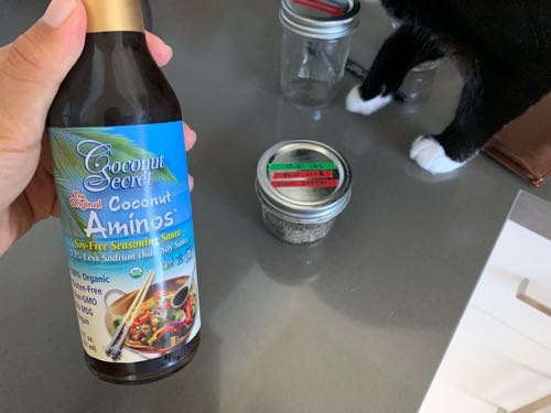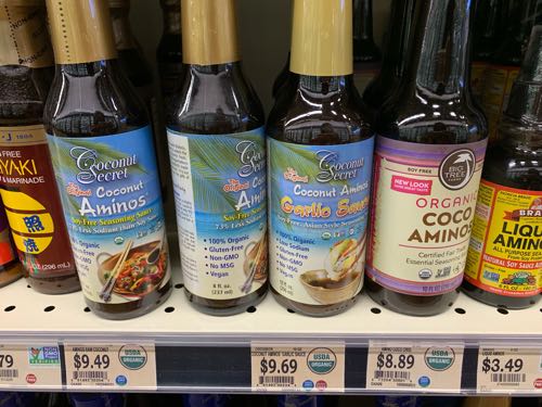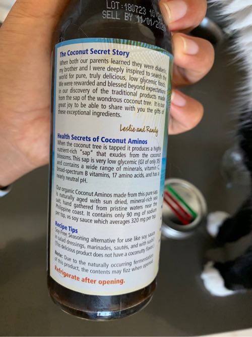 醤油の代わりになる、ココナッツで作った醤油みたいなやつです。ヒスタミンを気にする人とか、大豆アレルギーがある人とかに人気みたいですよっ!