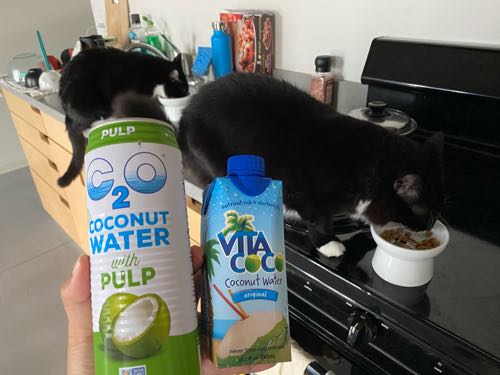 この前ココナッツウォーターの飲み比べをしてみました。(ちなみに、どっちもサムズで箱買いしたの!)