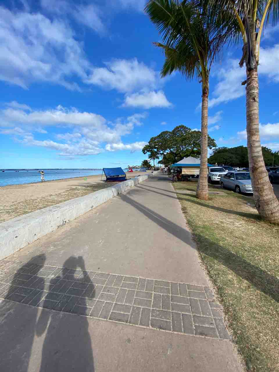 コーヒービーンからは、アラモアナビーチパークが見えるのだけれど、みんな歩いたり走ったり、サイクリングしたり、朝から元気。