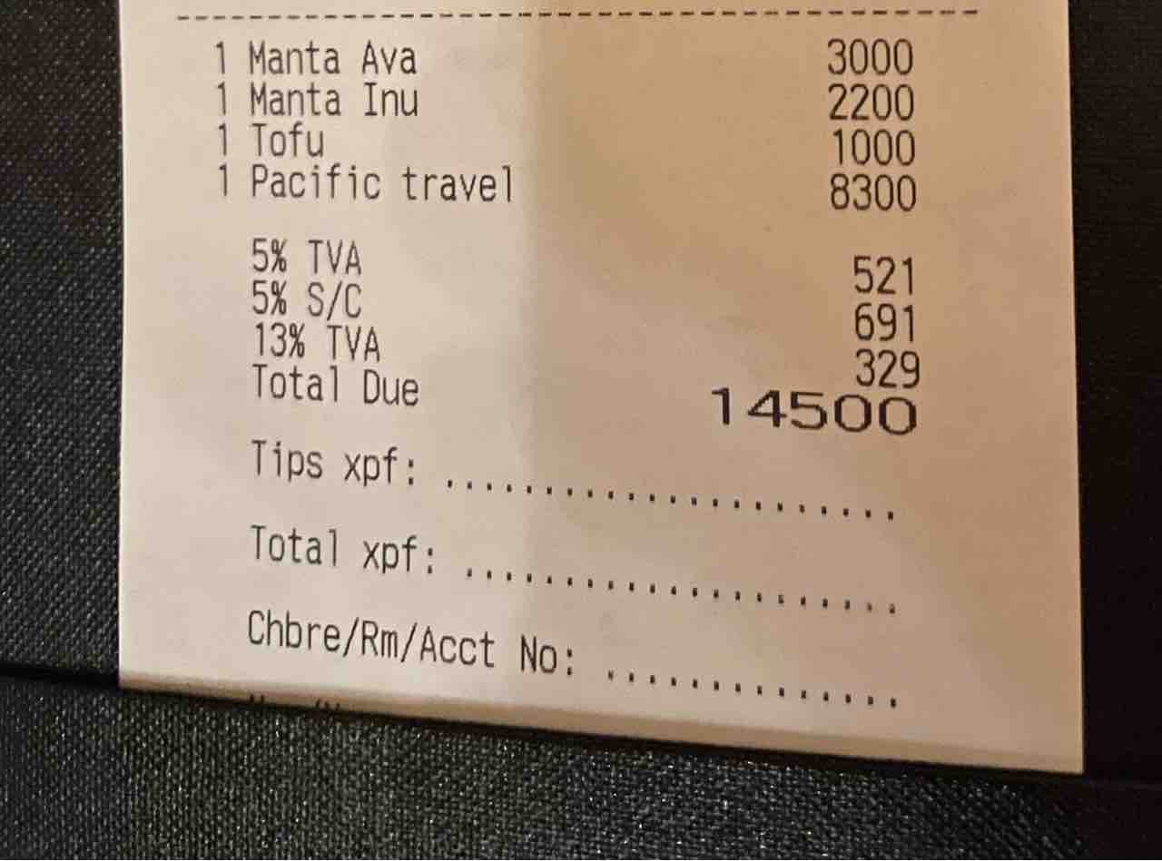 ハワイの高級ホテルの夜の寿司バーはすごいハイレベルなことが多いけれど、タヒチは「いかにも外国で食べる寿司」って感じ!