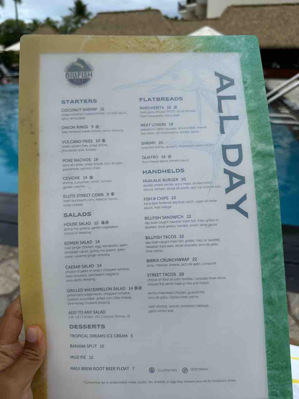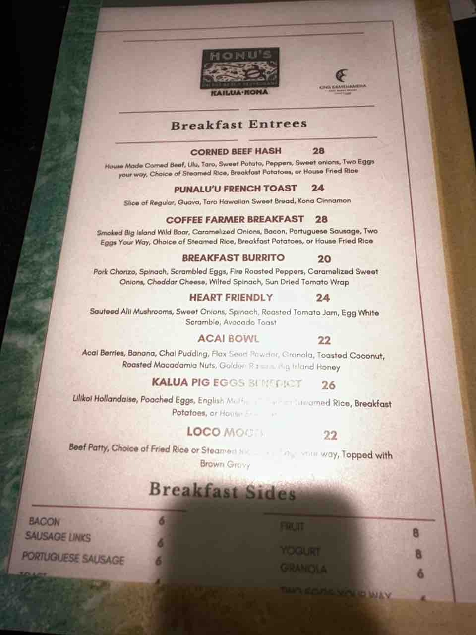 こちらはホテルの直営レストラン、HONU's(ホヌズ)の朝ごはんメニュー。