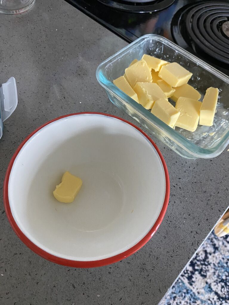 というわけで、次はバターをお皿に塗りたくってみました。