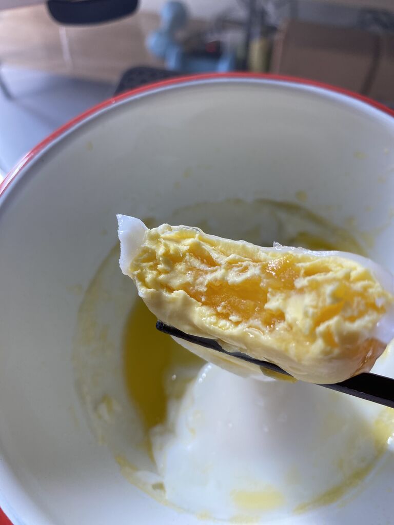 ちょっと水足して再加熱した後の卵ちゃんはこんな感じになりました。