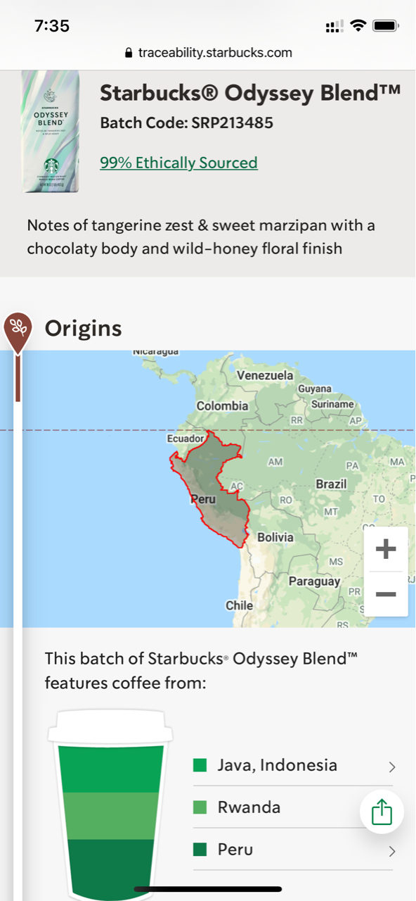 コーヒーの裏側のQRコードをスキャンすると、どこの豆で、どこで焙煎されたかとか全部出てくる。