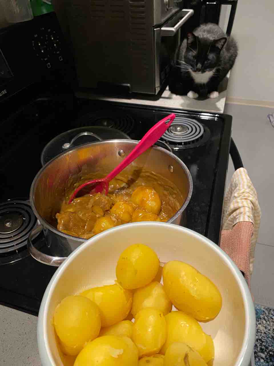蒸すと皮が手でぺローンって剥けるのでカレーに後入れ!煮崩れないし、ジャガイモはむっちり美味しいのです。