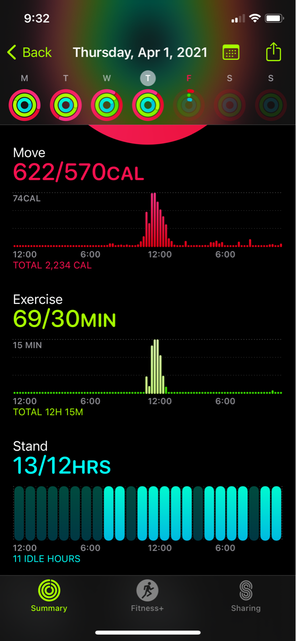 ・Apple Watchのリングを3つクローズ!(570kcal,運動30分,スタンド12時間)