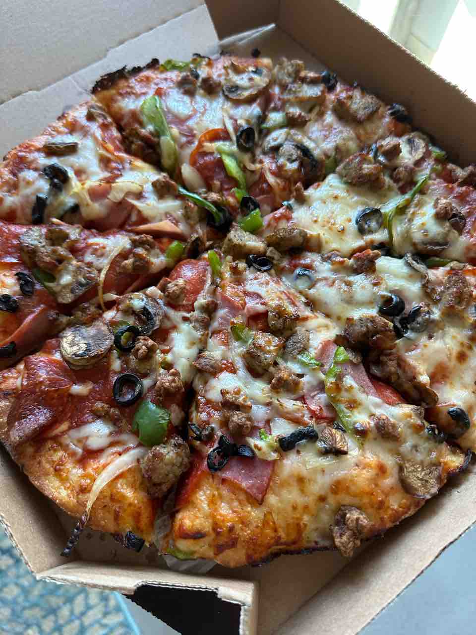 3月24日までドミノピザが半額!っていうのをインスタで見て、夫に送ったら、ちょうどダウンタウンにいた夫が乗り気になって昨日の夜ご飯はピザ。