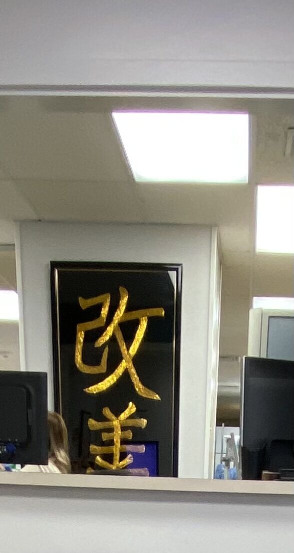 なんで受付の奥、改善って大きいやつ飾ってあるの?