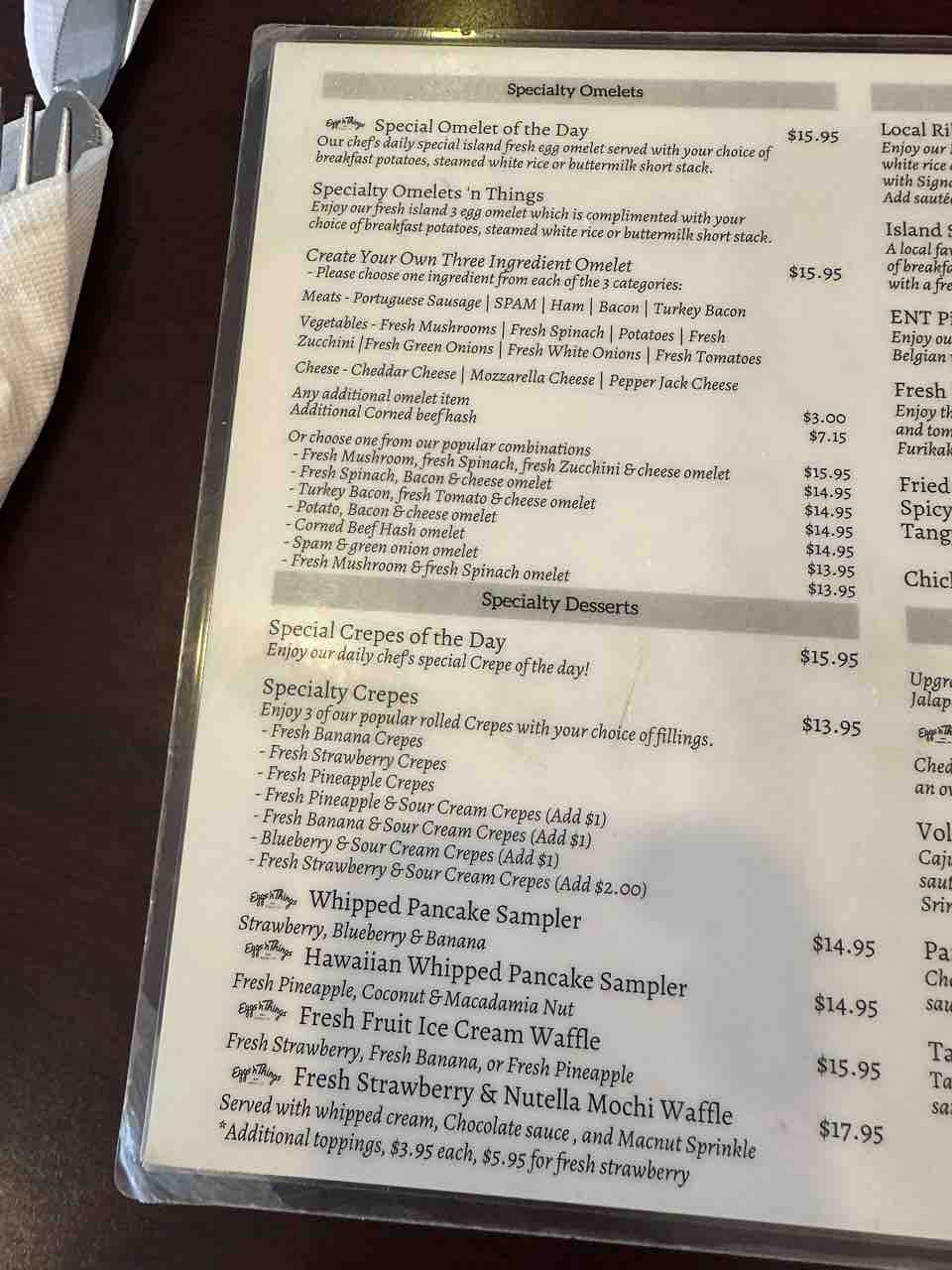 Webサイト→Eggs 'n Things Hawaii – Specializes in pancakes, omelets and crepes