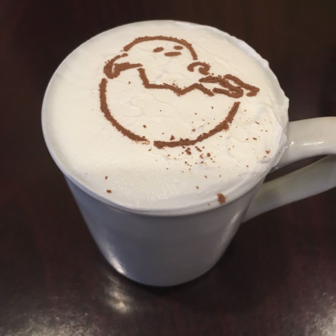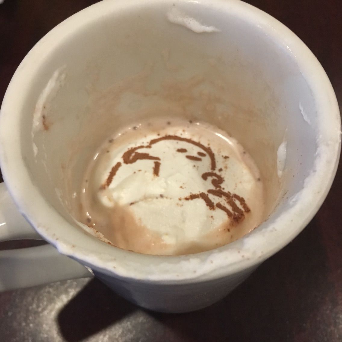 これはホットチョコレートにものすごくホイップがのってて、ぐでたまさんが描かれてるやつ。