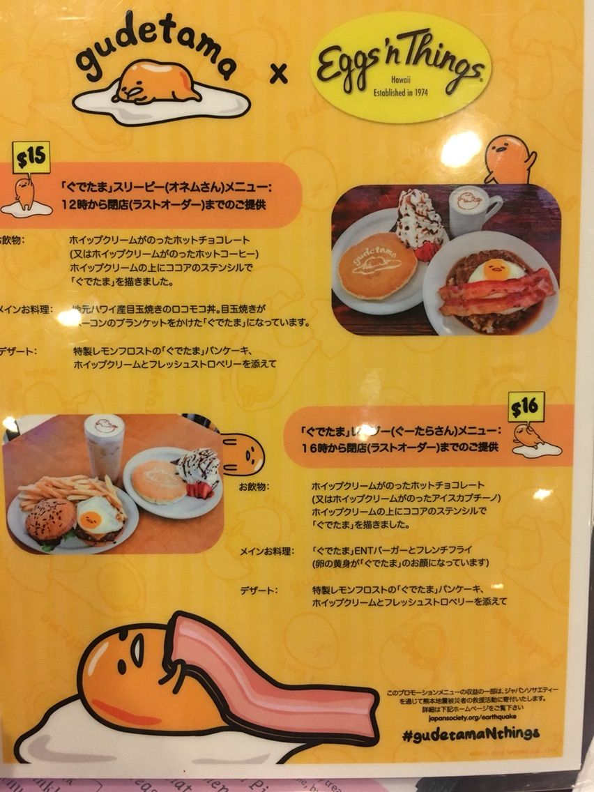 昨日は、エッグスンシングスに行ってきた!お目当ては、もちろんぐでたまー!