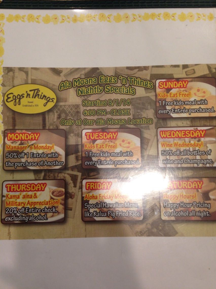 →Eggs 'n Things Hawaii – Specializes in pancakes, omelets and crepes