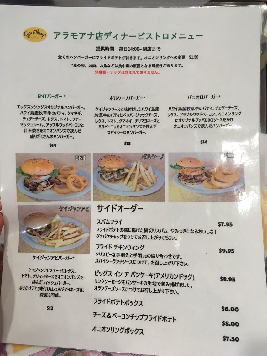 アラモアナ店はローカルなお客さんが多かったけれど、みんなオムレツとかステーキみたいのとか食べていました。