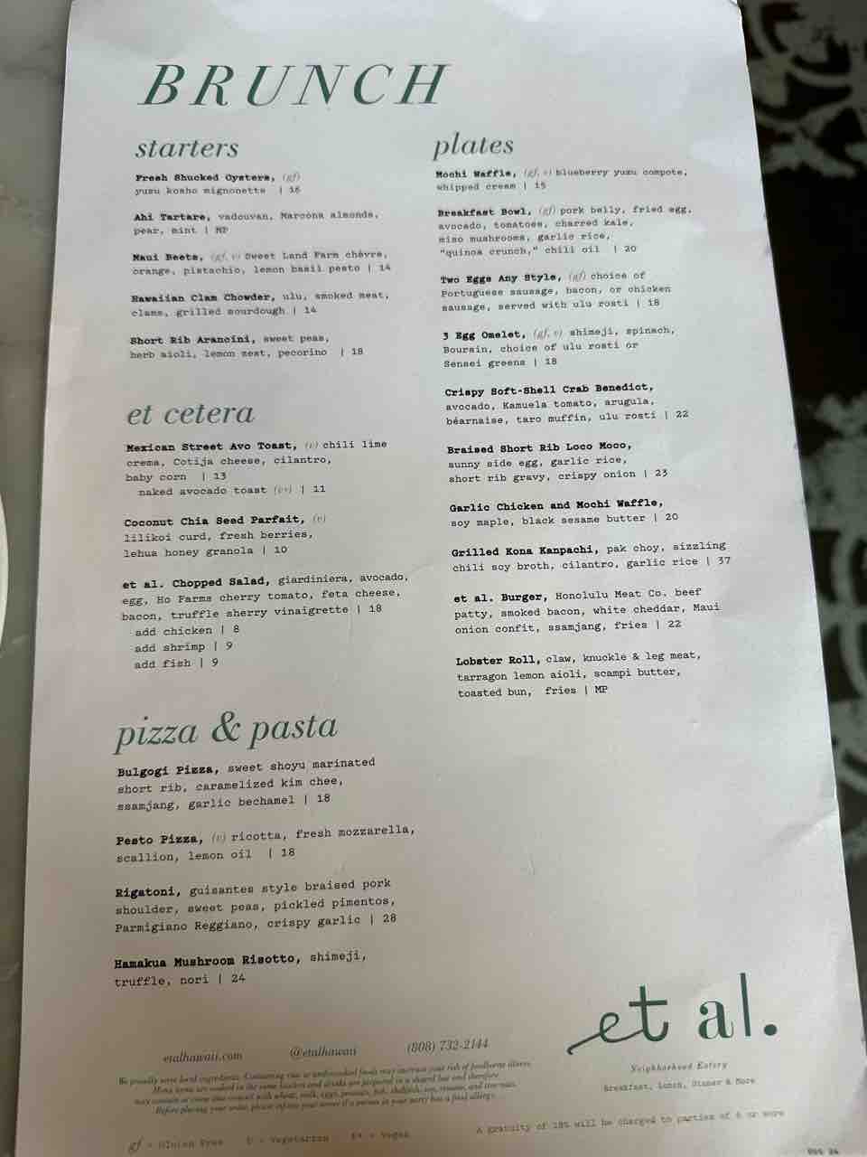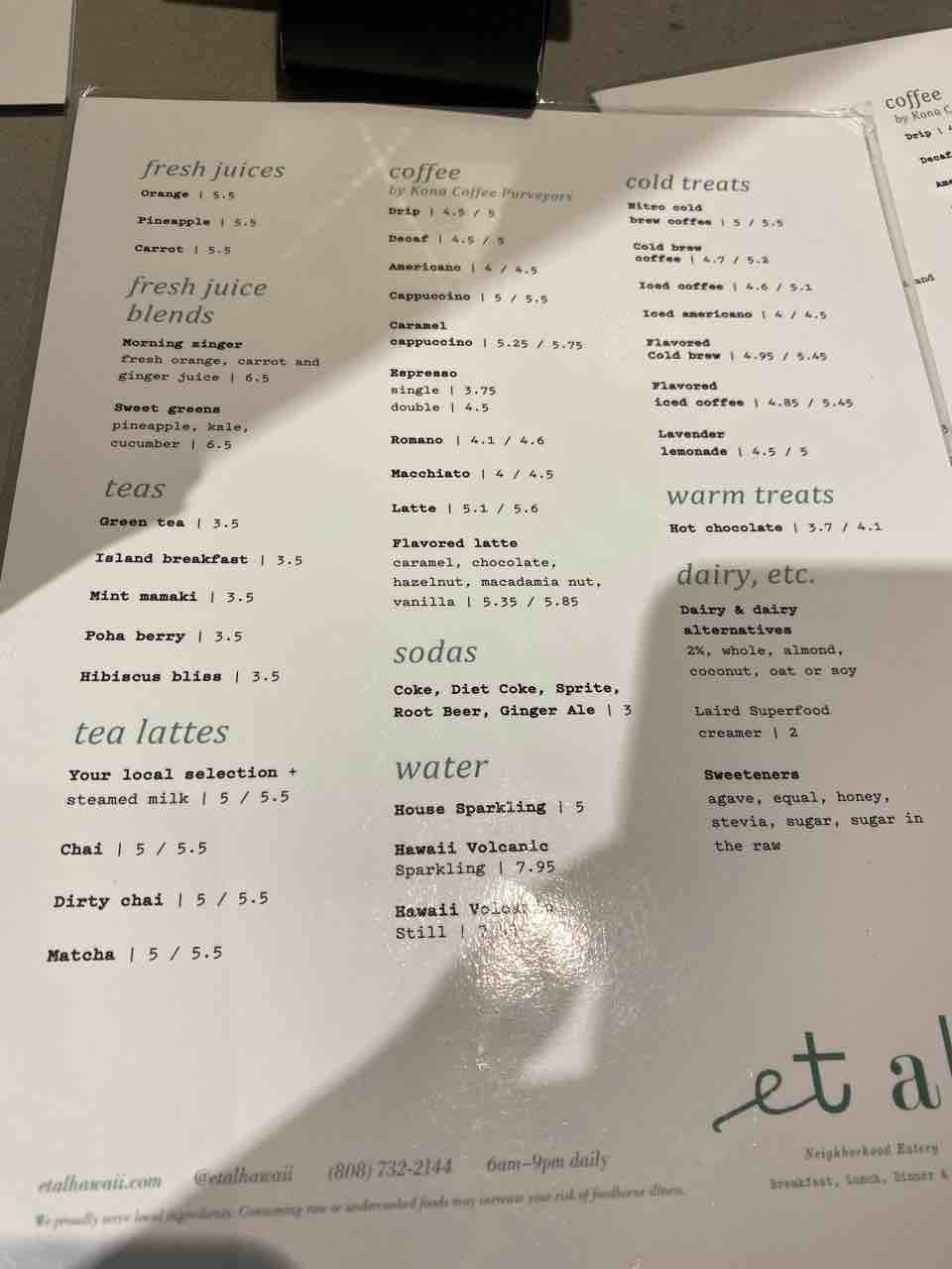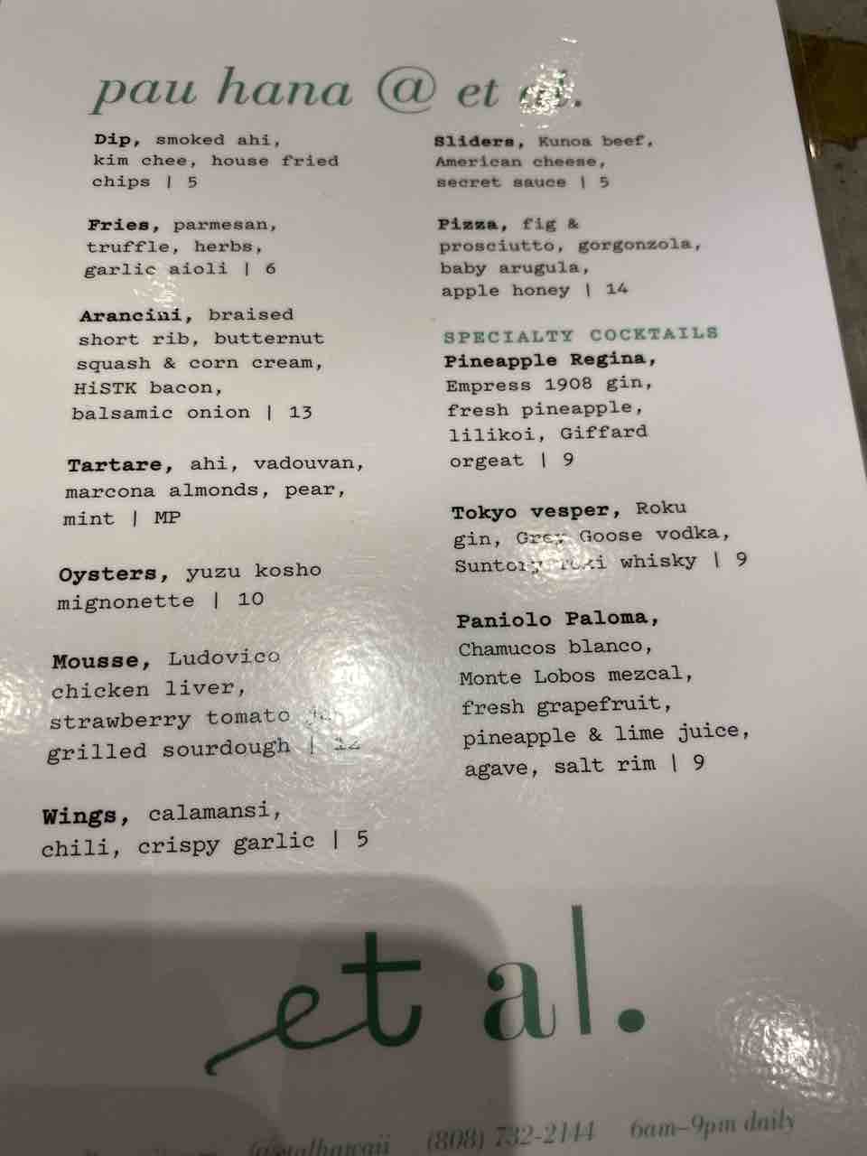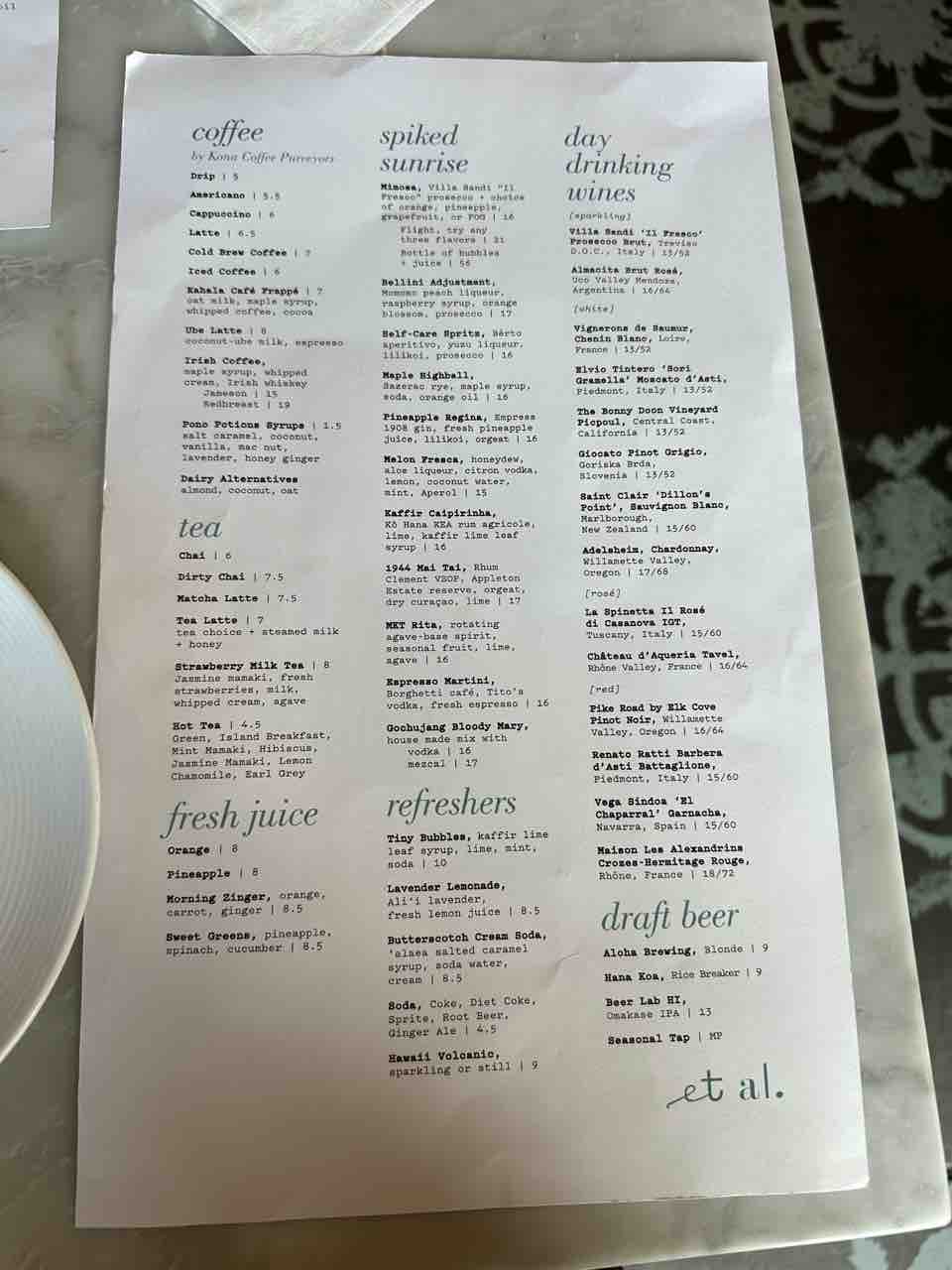 ウェブサイトでメニュー見れます▶︎et al.