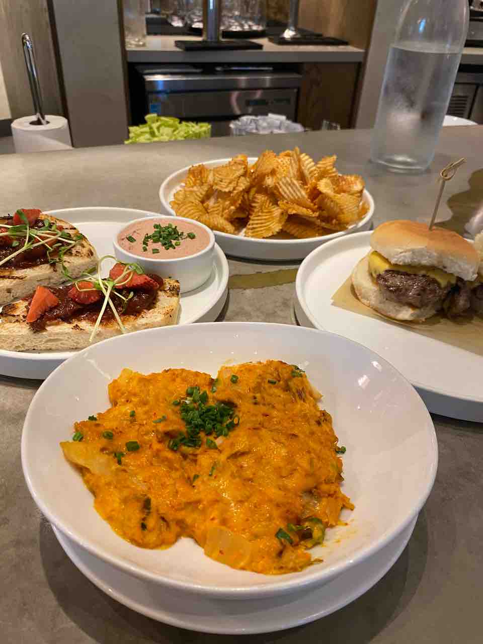 キムチとスモークアヒのディップには、お店手作りのポテトチップスが山盛りついてきます!