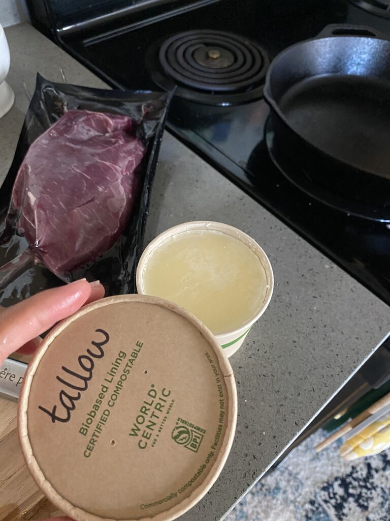 牛脂はこんな感じです。これでステーキ焼いたけど(昨日のお肉はクラロアランチのグラスフェッド牛!)美味しかった〜!