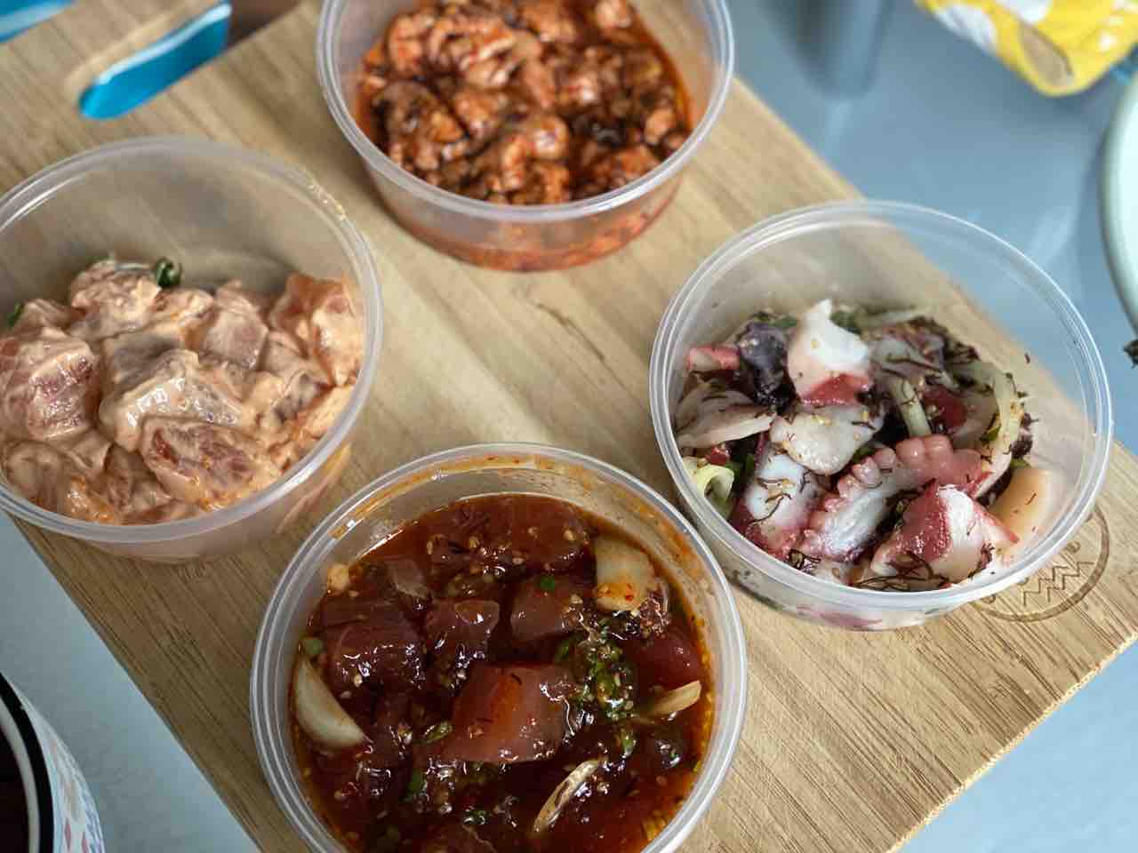 タコワサは普通にタコワサ。アヒのポケ2種類は普通。
