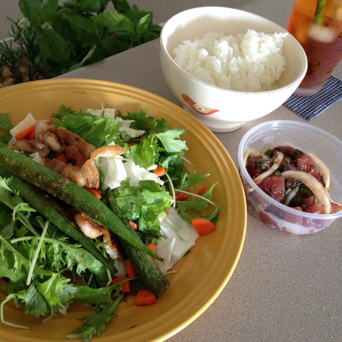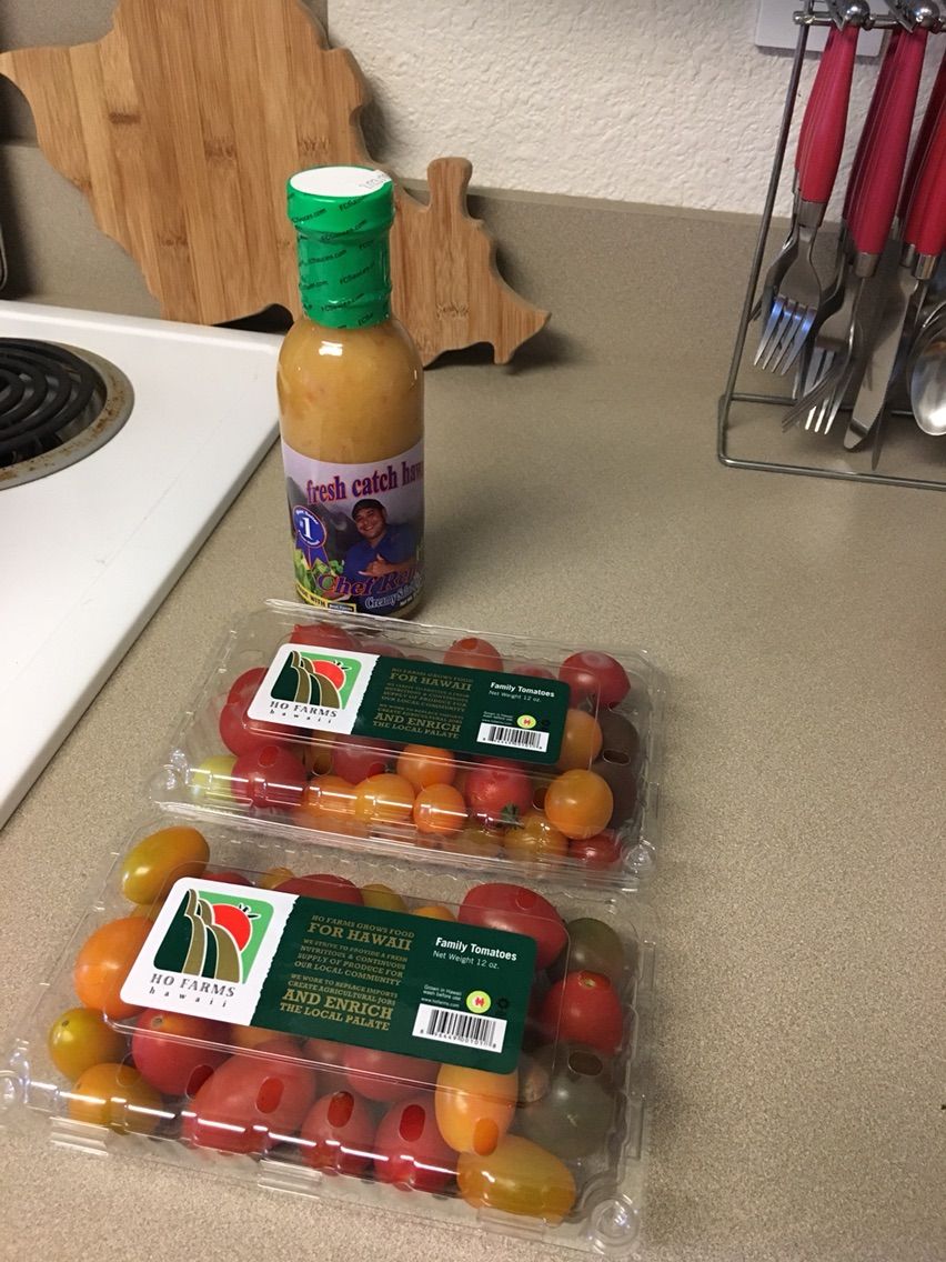 トマトはハワイのローカルのファームの、HOファームのやつで、美味しいトマト。
