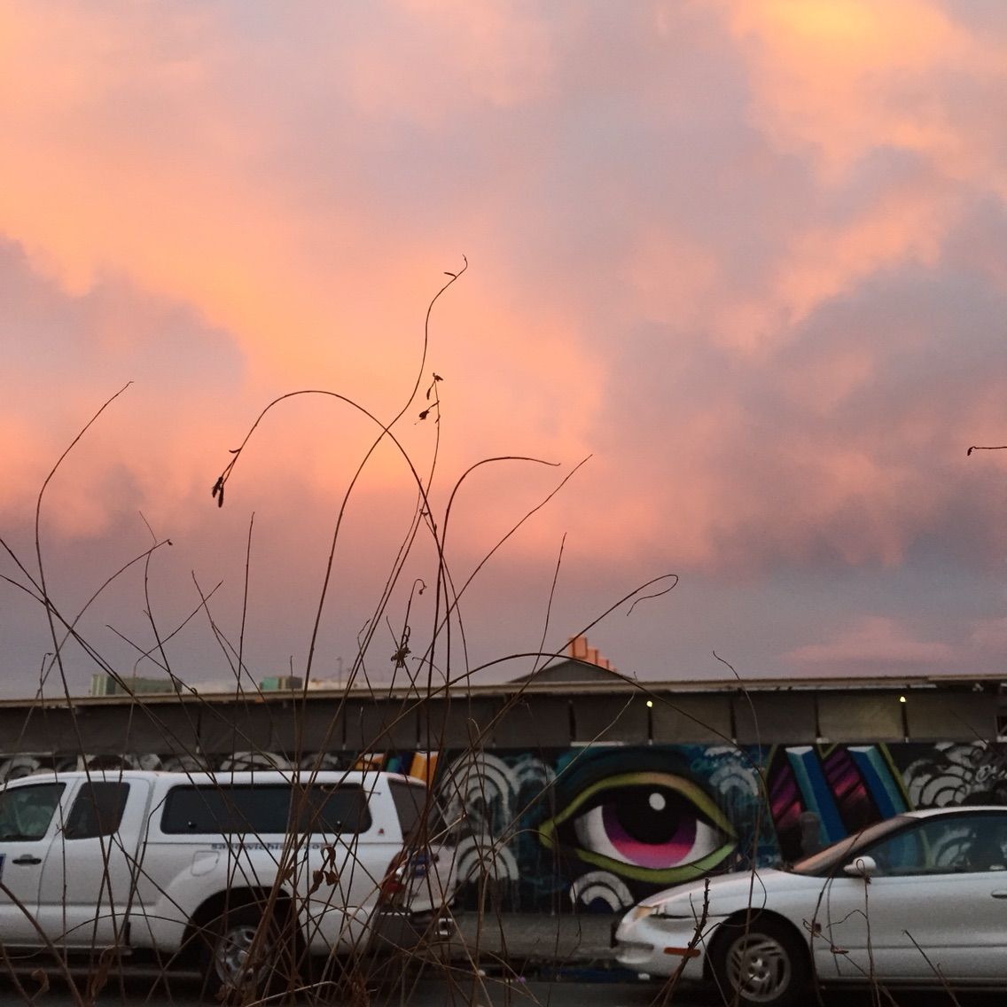 ウォールアートと綺麗な空を見ながら♪