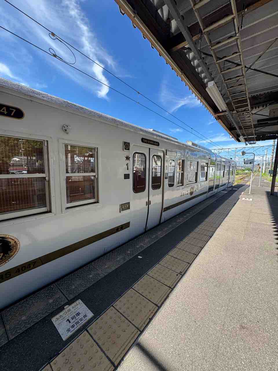 ここからお目当ての観光列車、「ふたつ星4047(ふたつぼし 4047)」に乗ります!