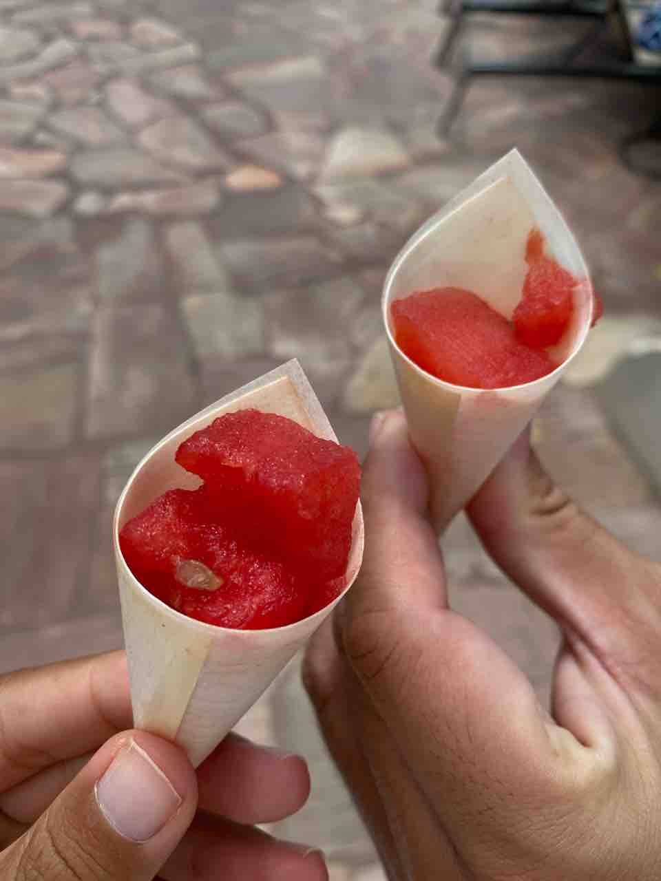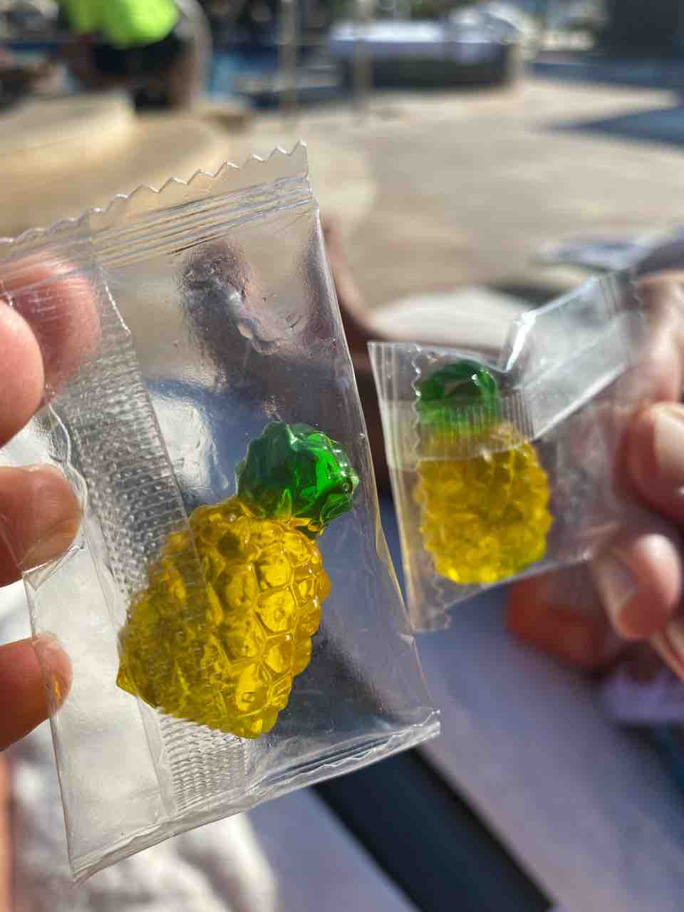プールサイドでは、たまにフルーツやお菓子を配ってくれます。