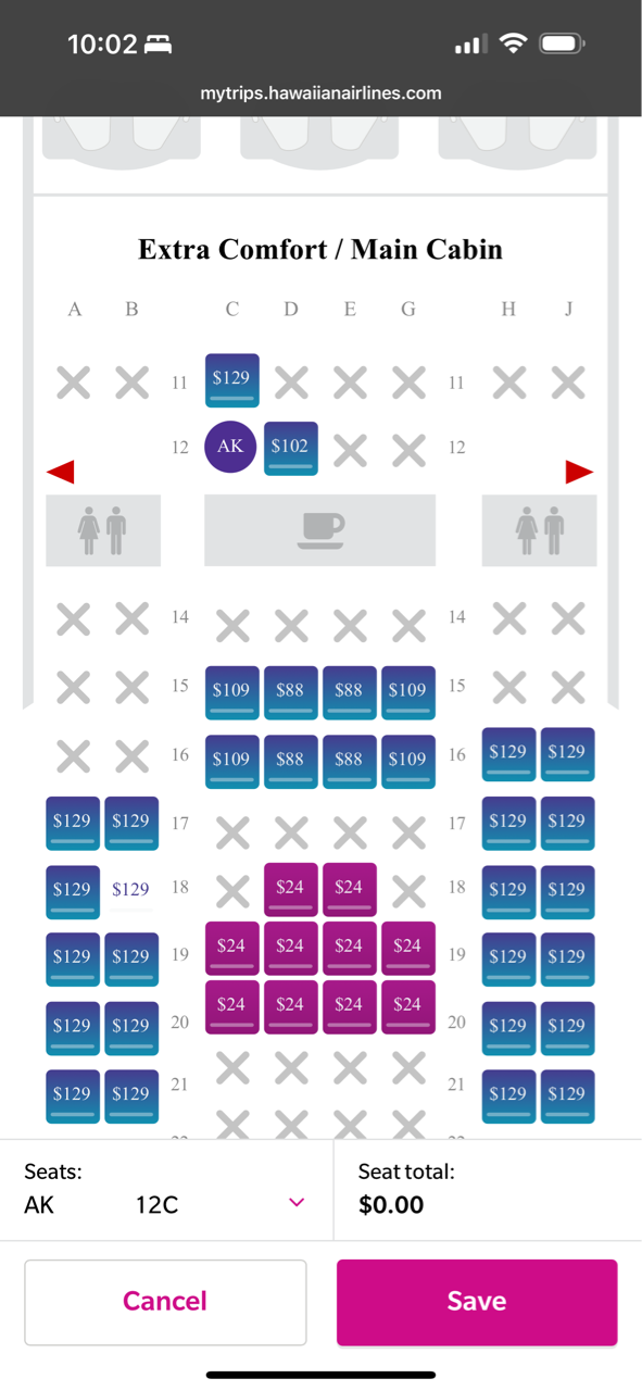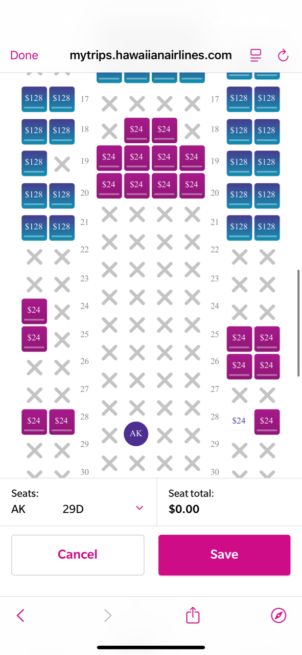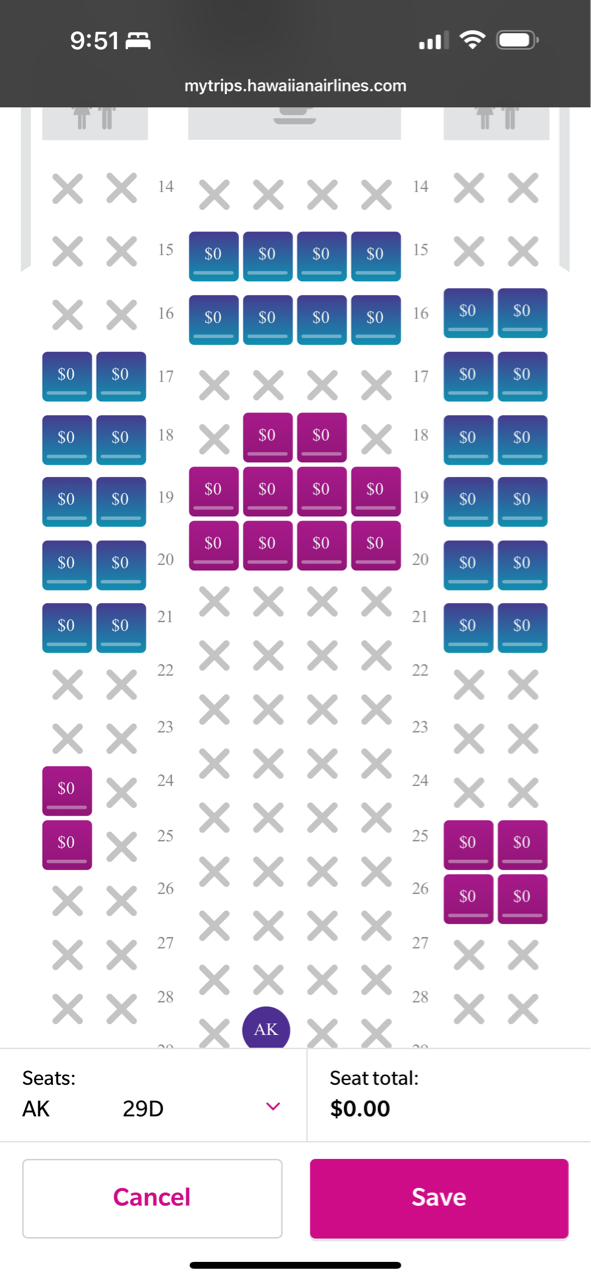 以前ハワイアンで日本に帰った時も謎のタイミングでピンクの部分が無料開放されたことはあったんだけれども