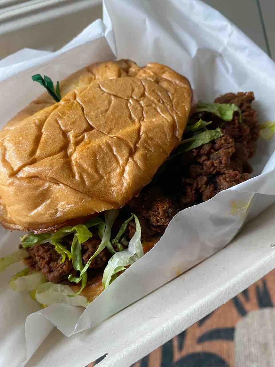 これはフライドチキンサンド。結構スパイシーでした!なんかスパイスが色々入ってた!