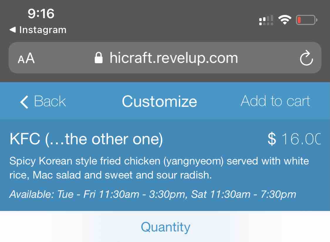 先週はハワイ島に行っていて、これなかったハイクラフトキッチン。今回はなんとKFC(コリアンフライドチキン)でっす!