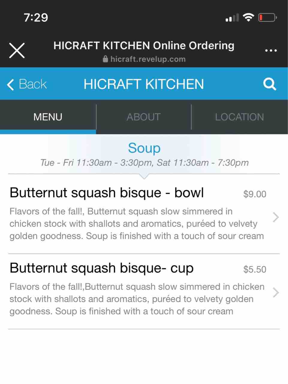 それからバターナッツスクアッシュのスープも頼みましたがこっちも最高に美味しかったですっ