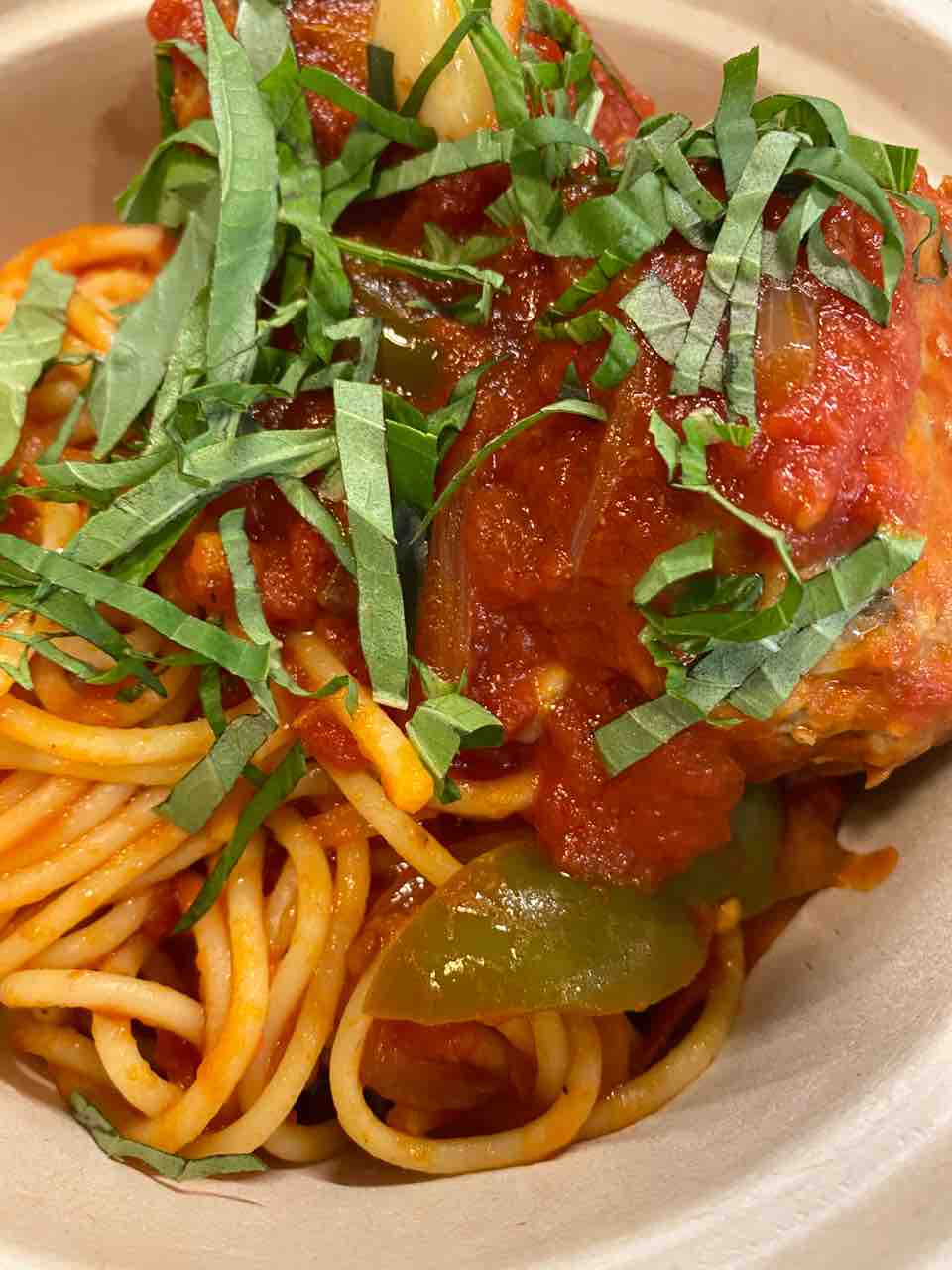 なんかフレーバフルでめちゃくちゃ美味しい。それにトマトソースが、フレッシュですごい美味しいのよ〜