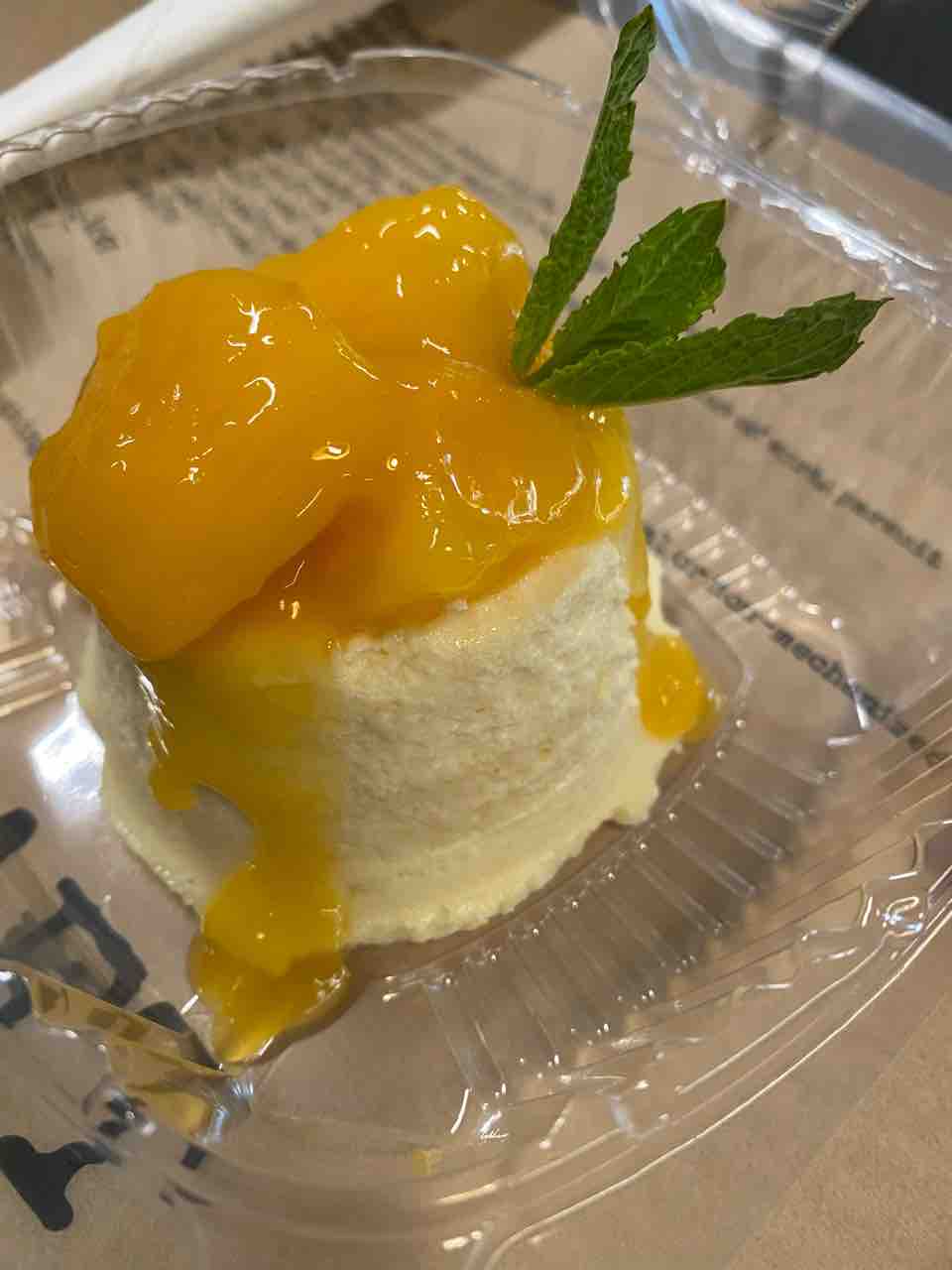 デザートにはスモールサイズのチーズケーキも。マンゴーソースがたっぷりとな〜