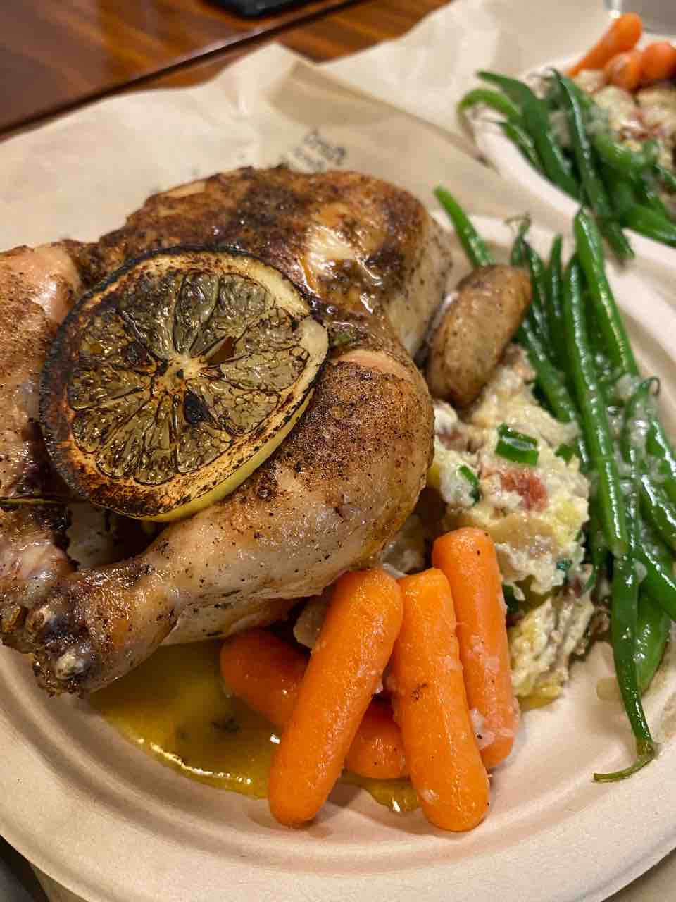 お腹にはレモンとハーブとニンニクがぎっしり詰まってて、それが絶妙な焼き加減でローストされてて、うわぁぁぁぁ〜最高!