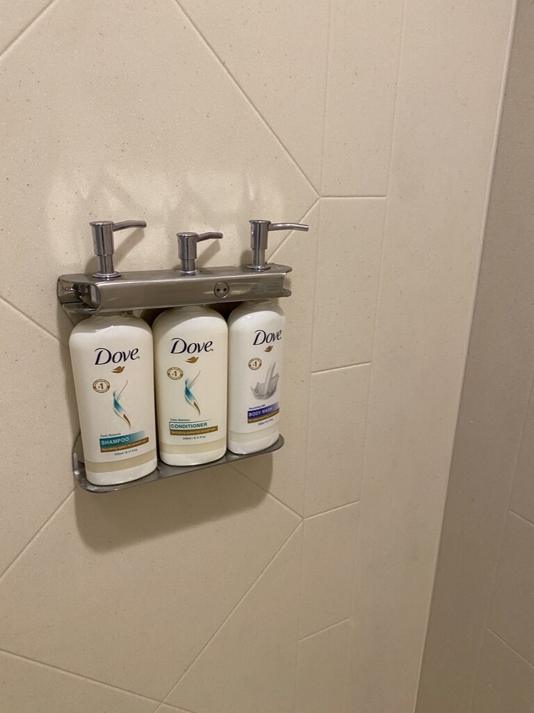 シャンプーとかは全部、持ち帰れないようになってます。ダブです。