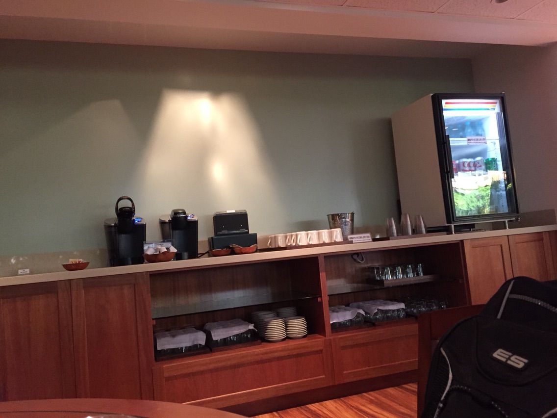 ラウンジは飲み物しかなくて、食べ物の持ち込みも禁止です。