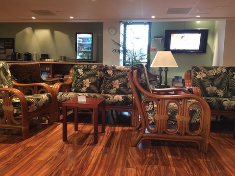 本当はプルメリアラウンジを使いたかったんだけれど、9時オープンだったの!