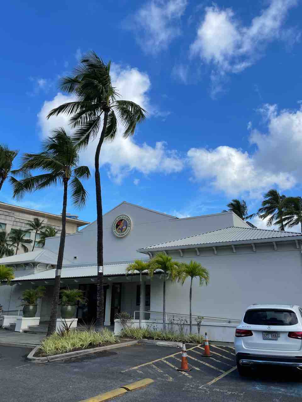 レンタカーを24時間レンタルしていて、路駐が無料なのが7時までだったので夫と朝カフェ!アラモアナのエクスペリエンスセンターです。