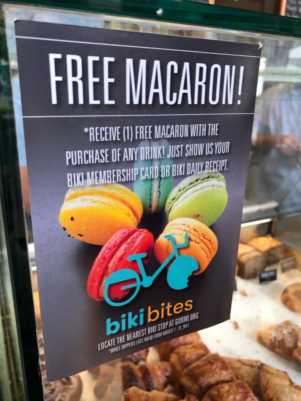 バイクシェアのbikiのメンバーズカードを見せると、無料でマカロンがもらえる!