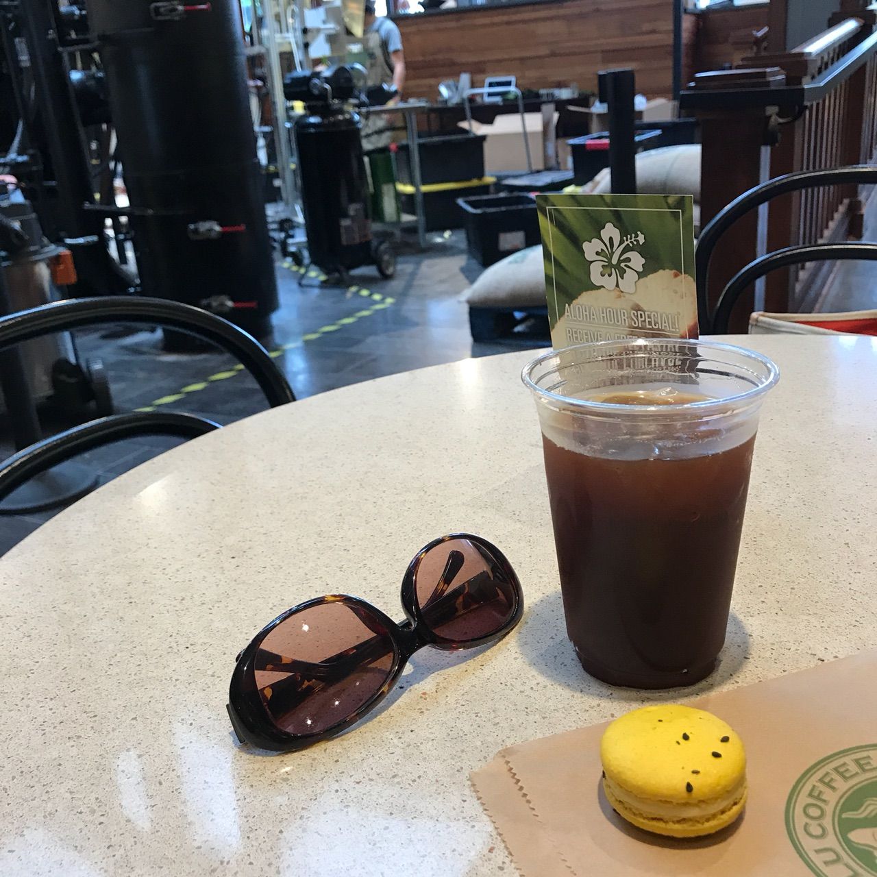 わたしはアイスアメリカーノと、リリコイマカロン。