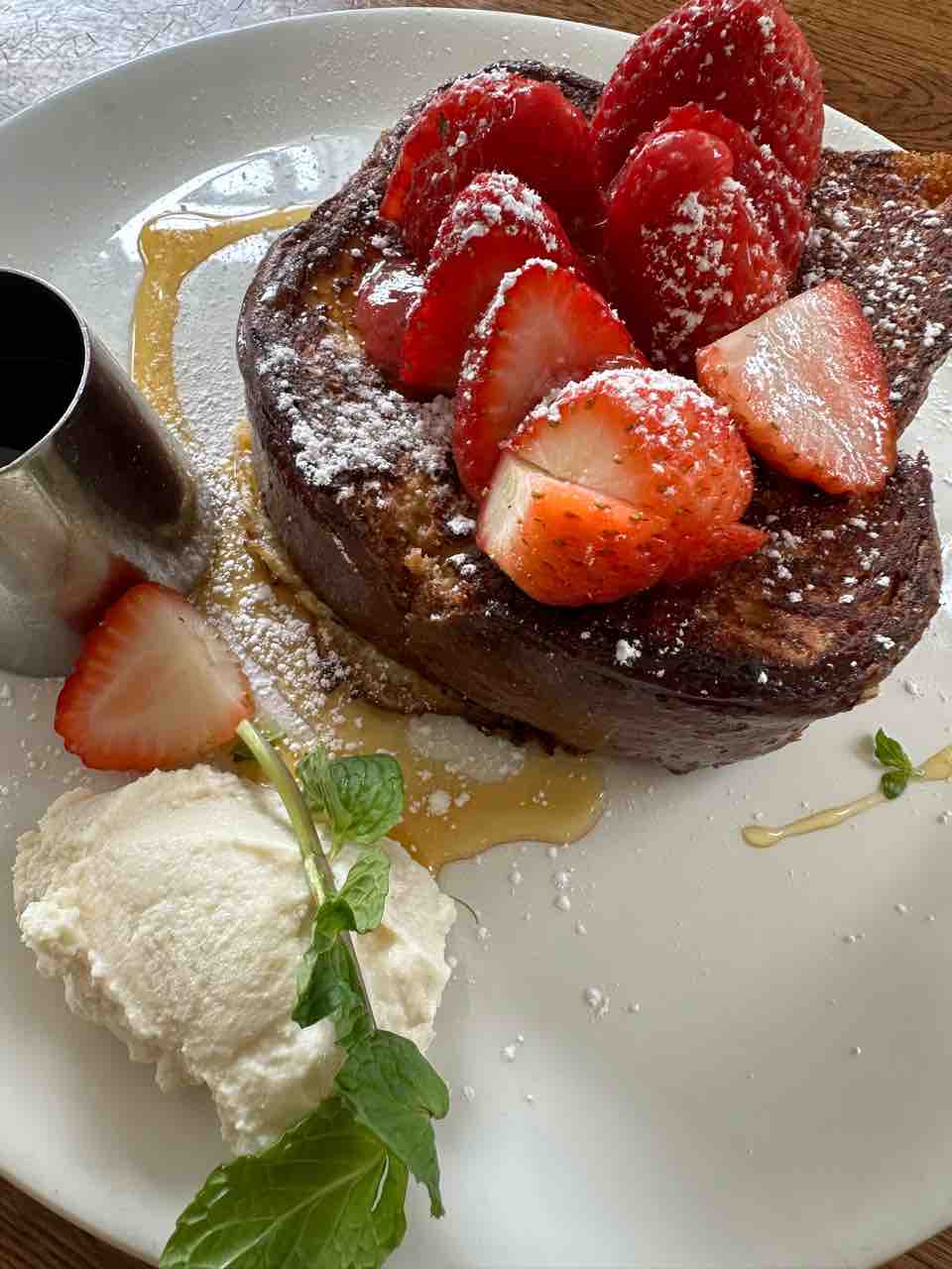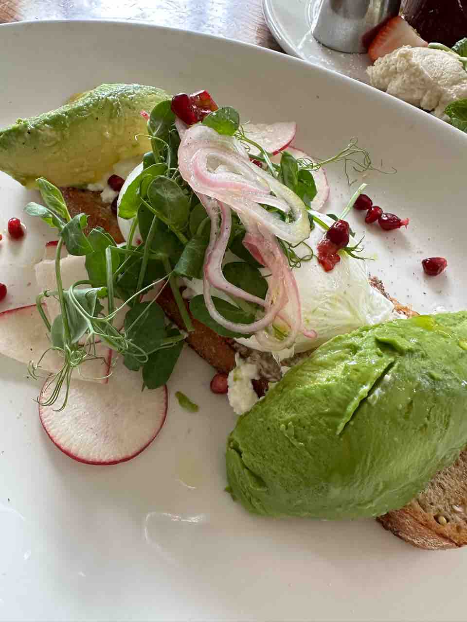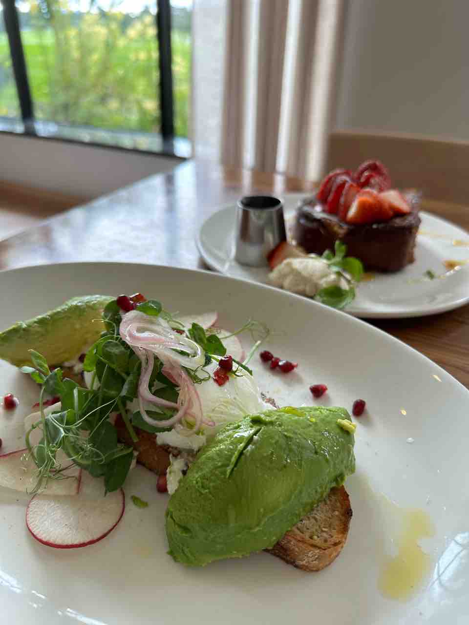 アボカドトースト(19ドル)とローカルストロベリーのフレンチトースト(17ドル)