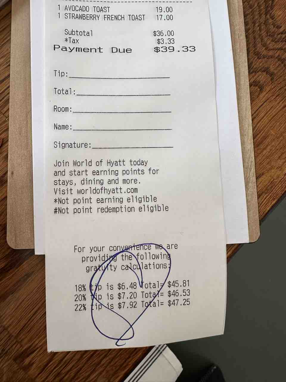 39.33ドル+チップでした。