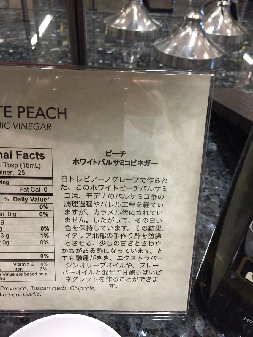 このピーチホワイトバルサミコと、ピンクグレープフルーツオリーブオイルをゲットしました。バルサミコは氷で割って飲んでも絶対おいしい。