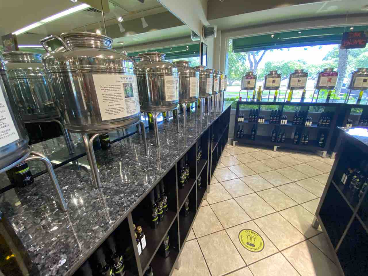 この前、久々にアイランド・オリーブオイルへ行ってきました。オリーブオイルがいっぱい並んでいて、味見をしながら決めることができます。