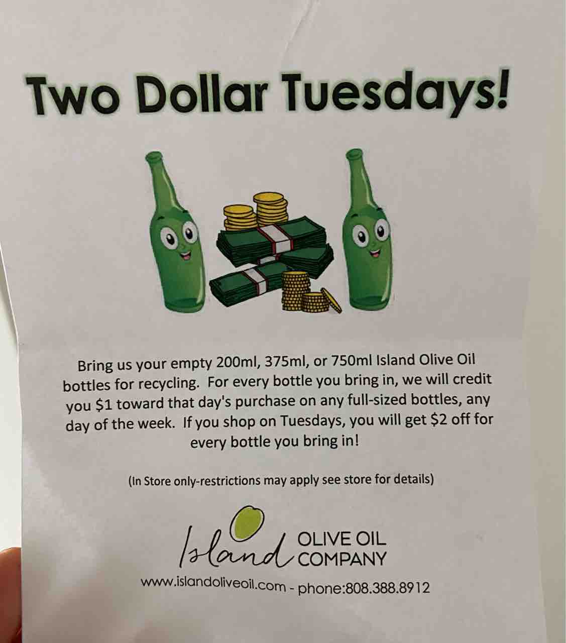 そうそう、空き瓶をリサイクルに持っていくと1ドルオフになるのでお忘れずに!