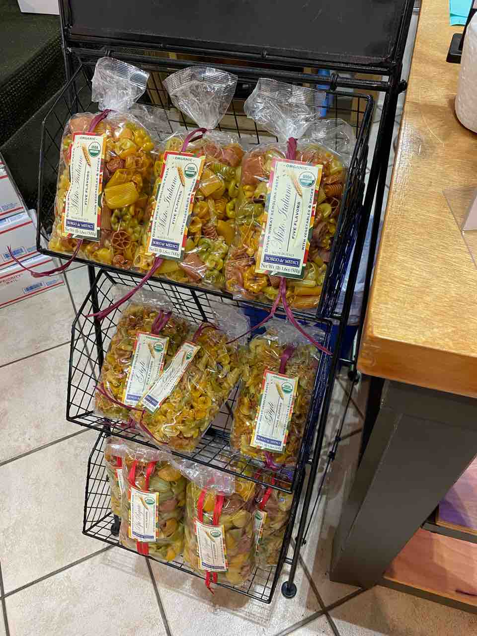オリーブオイルのお店で、バジルペストソースをゲット。半額で7ドルくらいかな。