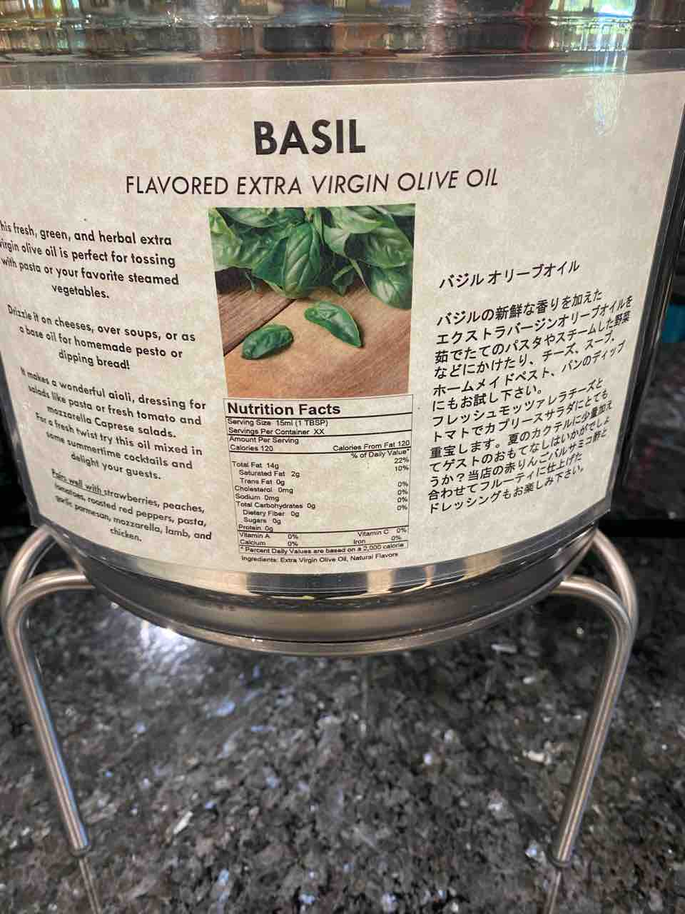 200mlのオリーブオイルやビネガーが18ドルくらいなので安くは無いのだけれど、これがあると毎食幸せになるので、そう考えると安いかも?