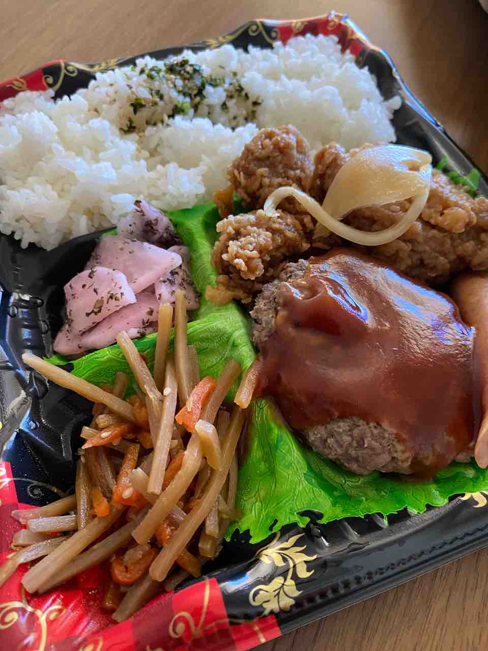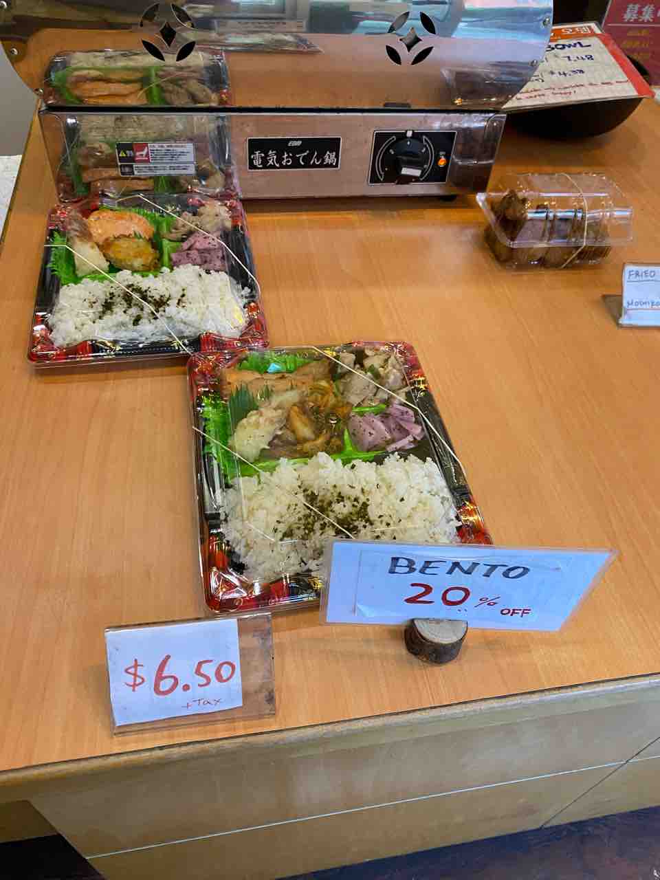ホテル暮らし中のご飯。何を食べようかあちこち彷徨って、結果いやすめ。夕方の5時前に行ったら20%オフのお弁当を発見!