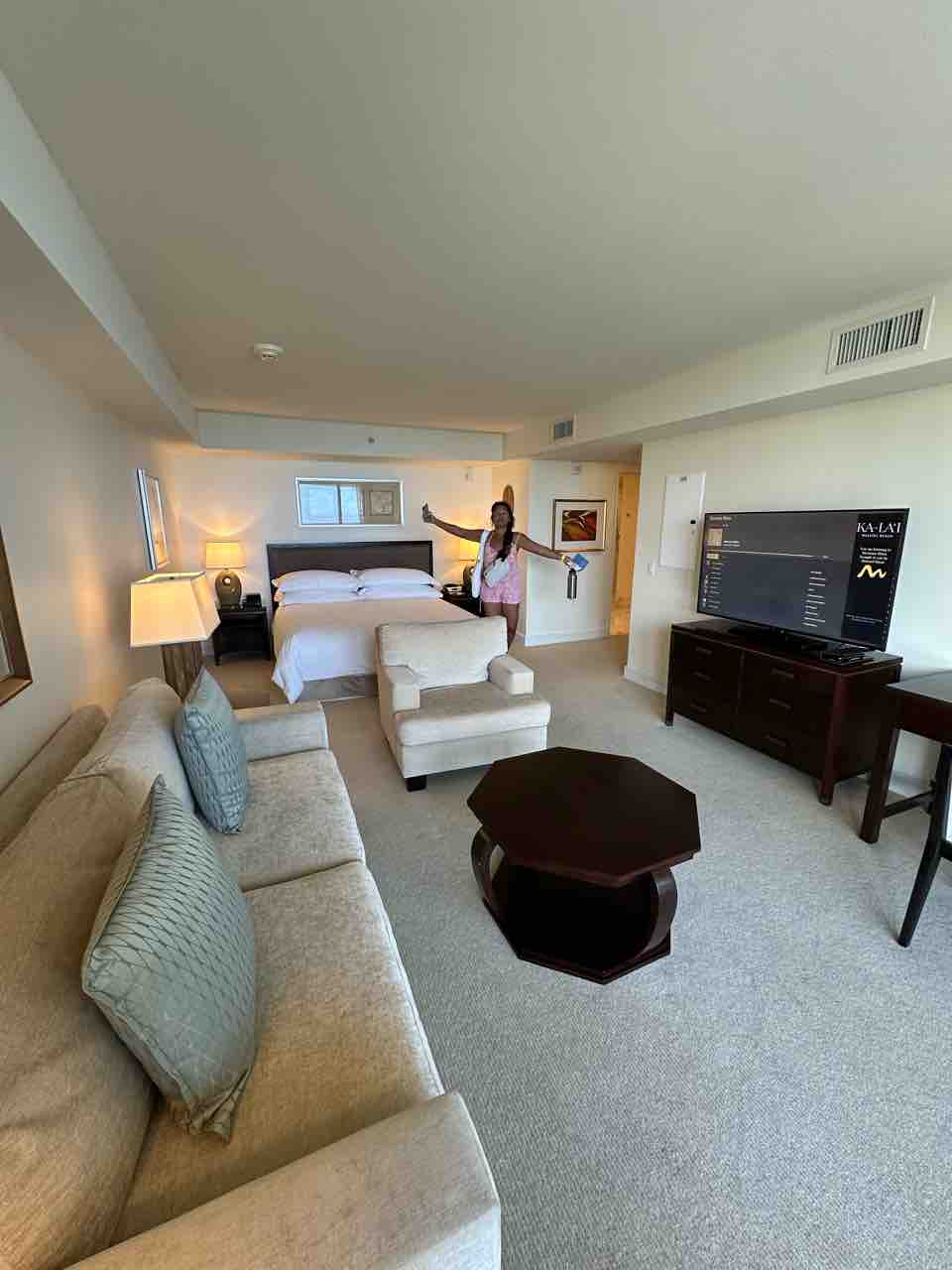 1番安いお部屋を予約してたけれど、夫がヒルトンの会員だからかアップグレードしてくださった!