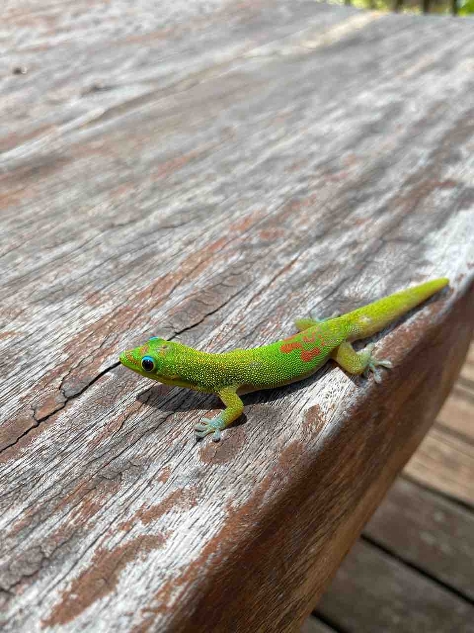 猫に気を取られていたら、ゲッコーに近づかれていた。
