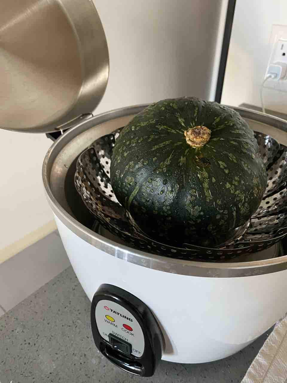 でも、丸ごと蒸してるので、かぼちゃの汁がドリップすることもなかったのでスチームプレートと受け皿用のお皿はなくてもよかったかもです!